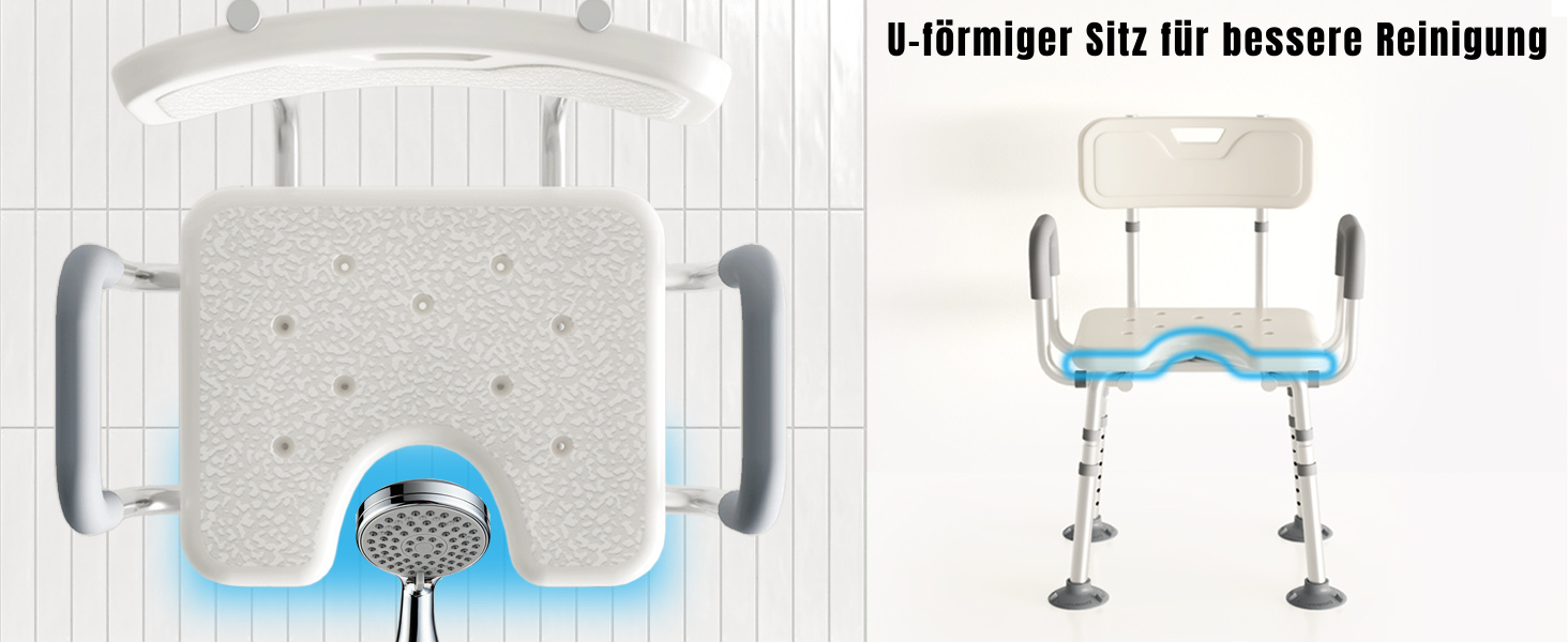 【Gründliche Reinigung】Die U-Form erleichtert sowohl die persönliche Hygiene als auch die Reinigung. Sie ermöglicht einen besseren Zugang zu Körperstellen, die sonst schwer zu erreichen sind, und macht die tägliche Reinigung effizienter und komfortabler. Bietet ultimativen Komfort und Halt.