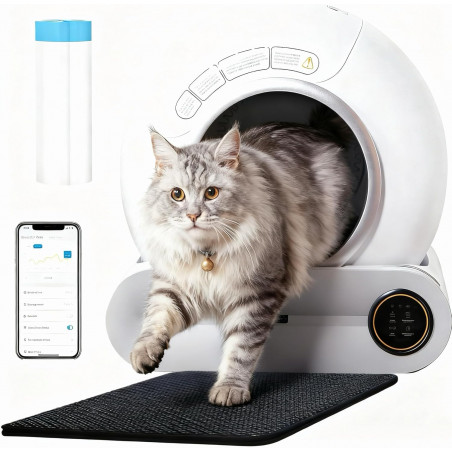 Large capacity: With a generous capacity of 65 liters, 65 Litern this self-cleaning cat litter box is spacious enough for cats of all sizes. Thanks to its large capacity, your cat can move comfortably inside, and it prevents litter from being spilled outside the box.