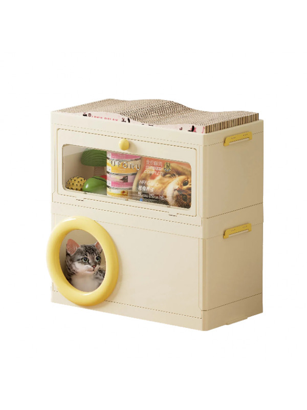 RMAN 3 in 1 Aufbewahrungsbox mit Katzenbett Höhle und Kratzbrett Faltbare, Gelb