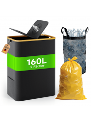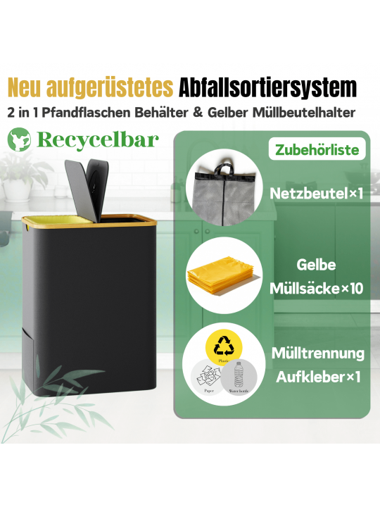 【2 en 1 y multifuncional】: Este cubo de basura mide 57 × 37 × 75 cm. Incluye un soporte amarillo para bolsas de residuos (capacidad 60-120 L; se entregan 10 bolsas) y un compartimento aparte para botellas reciclables. Aprovecha el espacio al máximo y cubre las necesidades de un hogar medio.