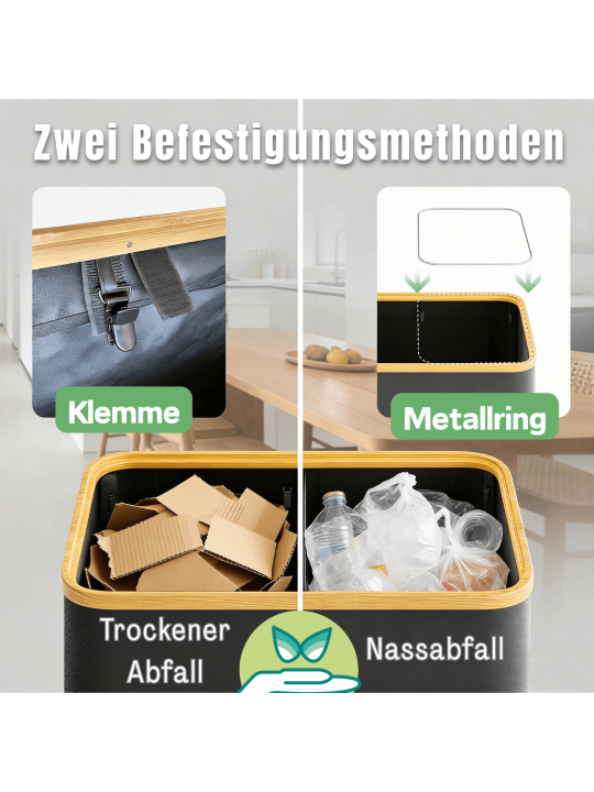 RMAN Cubo Basura de Reciclaje con Tapa y Aro para Bolsa, Cubo de Basura con 2 Compartimentos y 10 Piezas
