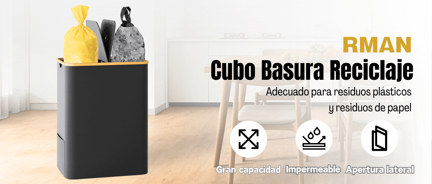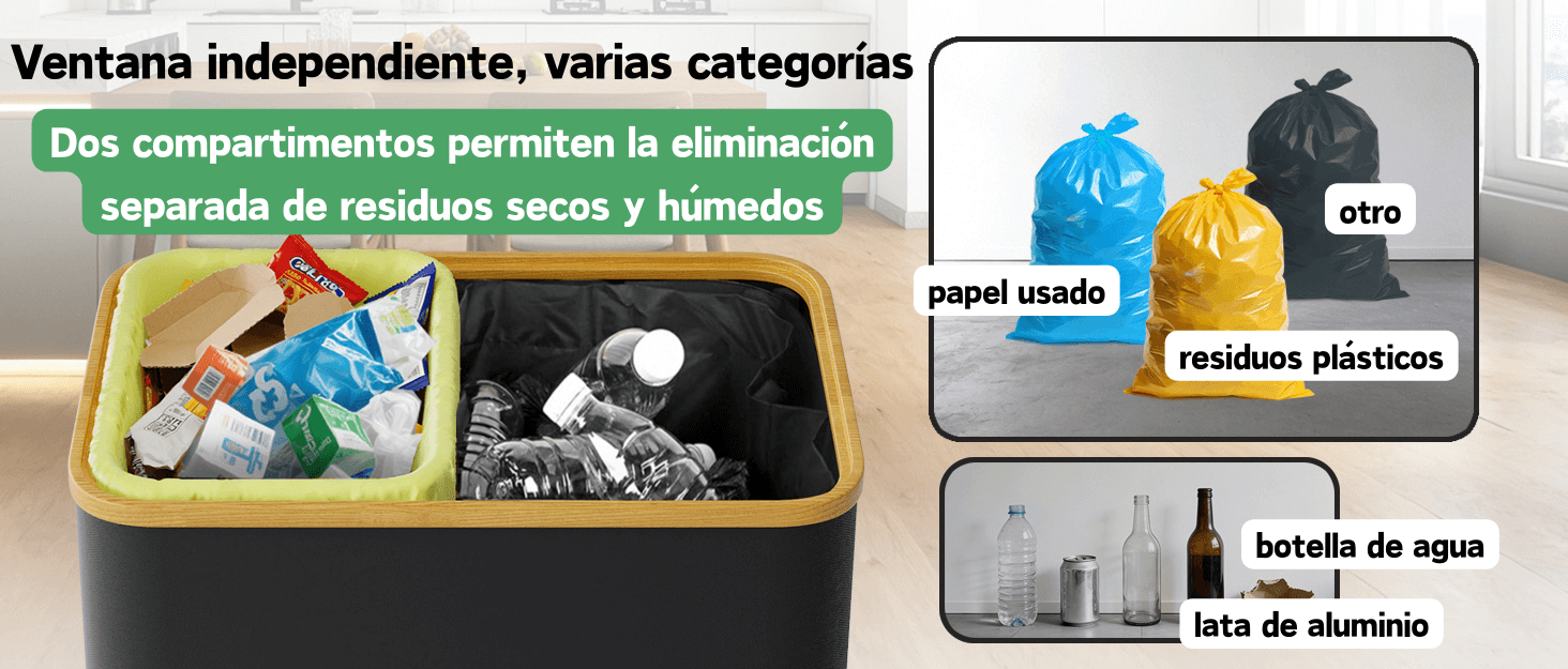 【Múltiples usos】: Ideal en cocina, salón o cualquier estancia que necesite clasificar residuos. También funciona como caja de almacenamiento, cesta de ropa sucia o contenedor para juguetes y ropa, creando un ambiente más limpio y ordenado.