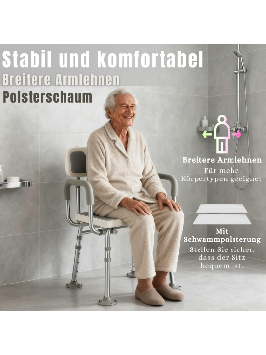 【Service Après-Vente Sans Souci】La tabouret de douche est livrée avec des notices en allemand et en anglais, claires et simples. Aucun outil n’est nécessaire pour l’assembler ou la régler. Notre équipe après-vente est également à votre disposition pour répondre rapidement à toute question ou problème, afin que vous puissiez profiter de votre achat en toute tranquillité.