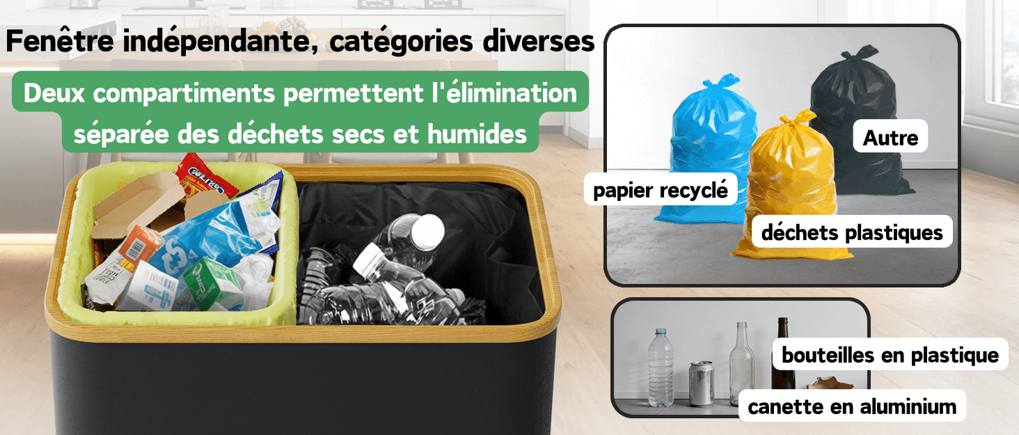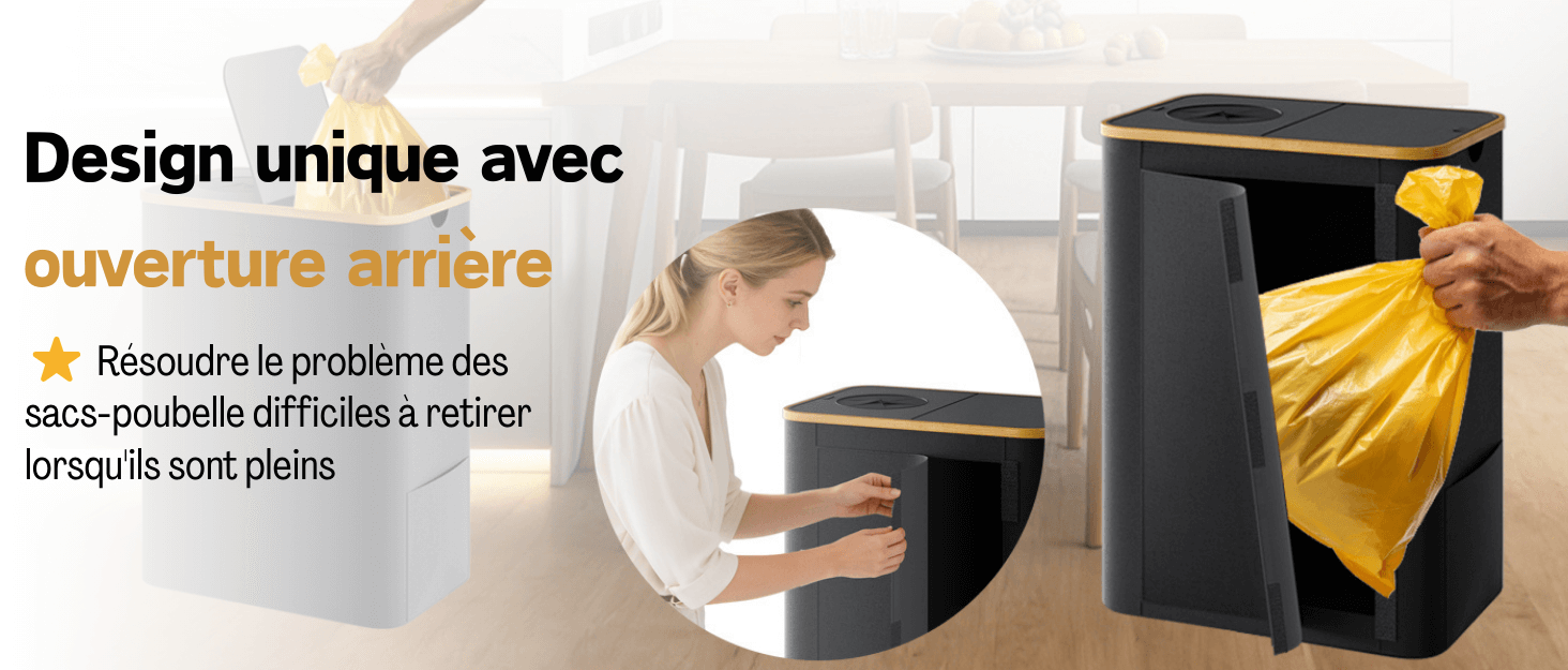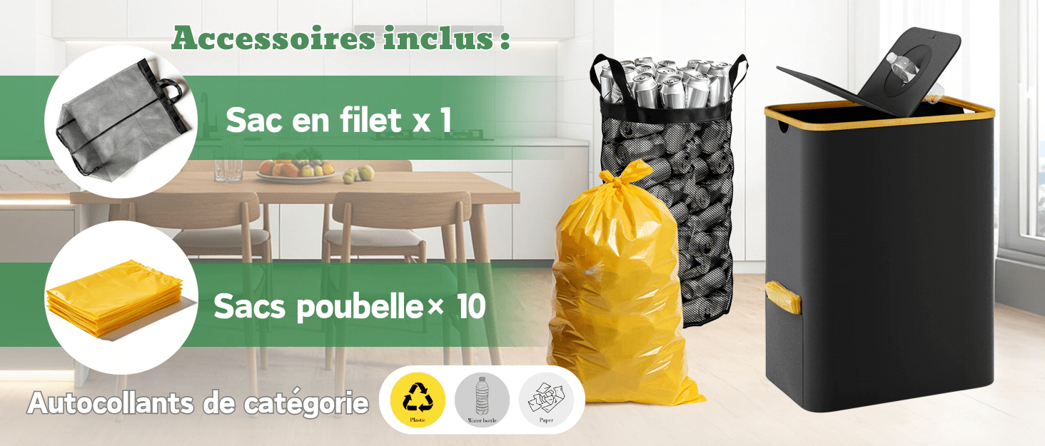 【Utilisations multiples】Parfait pour la cuisine, le salon et autres pièces, il facilite le tri des déchets ménagers. De plus, il peut servir de boîte de rangement, de panier à linge ou pour ranger jouets, vêtements et autres objets, contribuant ainsi à un intérieur plus ordonné et esthétique.