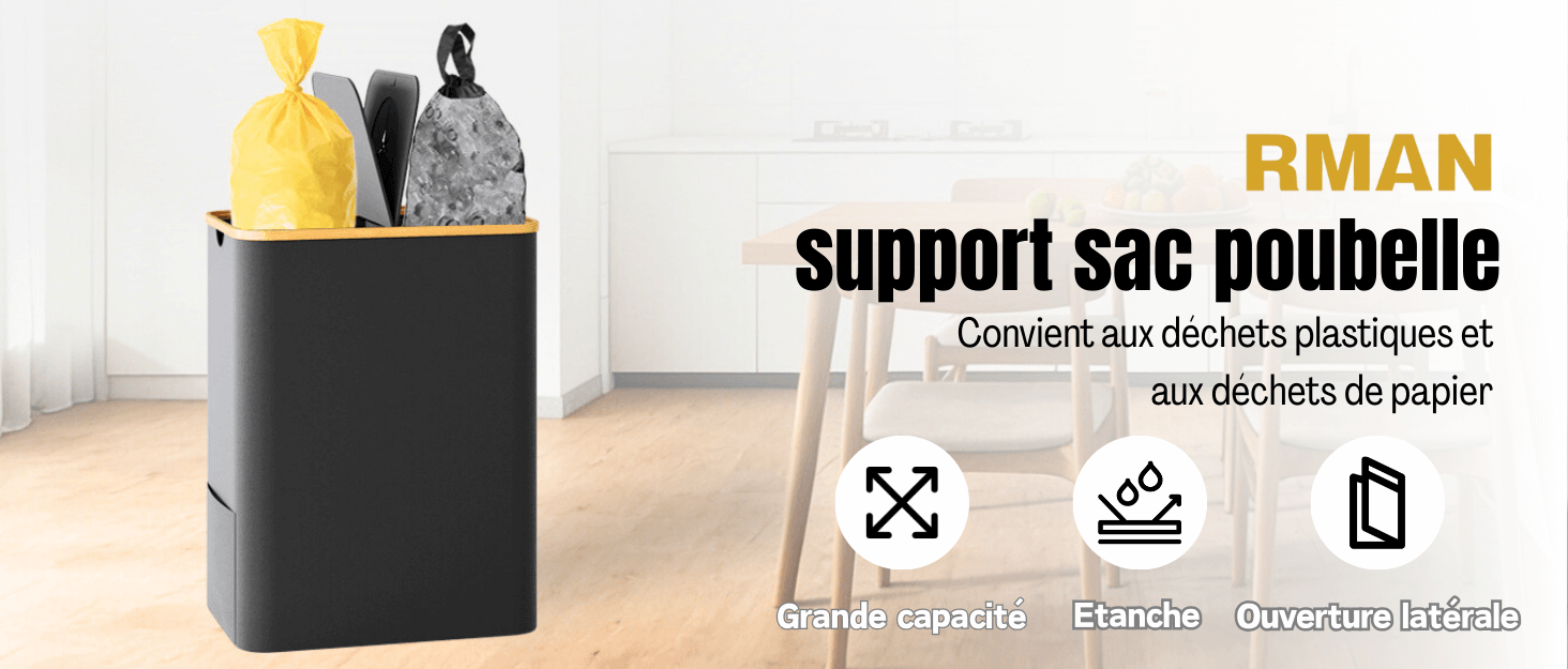 RMAN® 160L Support Sac Poubelle avec Couvercle Poubelle Tri Selectif Pliable avec 10Pcs