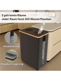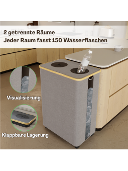 AGGIORNAMENTO DEL PRODOTTO: Il contenitore per la raccolta delle bottiglie di deposito è dotato di finestre di visualizzazione su entrambi i lati, che consentono di controllare facilmente il deposito interno in qualsiasi momento. La base è dotata di ruote rimovibili per uno spostamento facile e flessibile e per evitare l'usura del contenitore. All'interno del contenitore sono presenti due tasche interne rimovibili che consentono di trasportare facilmente tutte le bottiglie al centro di riciclaggio quando necessario.