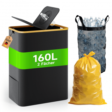 【2-in-1 multifunzionale】: Questo cestino misura 57 × 37 × 75 cm e include un supporto giallo per sacchi rifiuti (capacità 60-120 L, 10 sacchi inclusi) più un contenitore separato per bottiglie da riciclare. Ottimizza lo spazio e soddisfa le esigenze di una famiglia media.